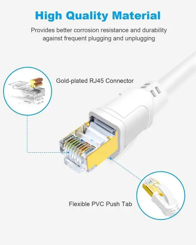 Suitable for outdoor, indoor and basement, can be buried directly. ^^ Wide CompatibilityAll CAT8 LAN cables are backward compatible with Cat7, Cat6e, Cat6, Cat5e and Cat5. Suitable for a wide range of network devices, such as switches, routers, servers, network printers, IP cameras, laptops, smart TVs, patch panel, hubs, keystone jack, PS3, PS4, PS5, X box etc. v ^^ Additional FeaturesSupports POE, allowing power delivery to network devices while transmitting data signals, ideal for IP cameras and wireless access points.