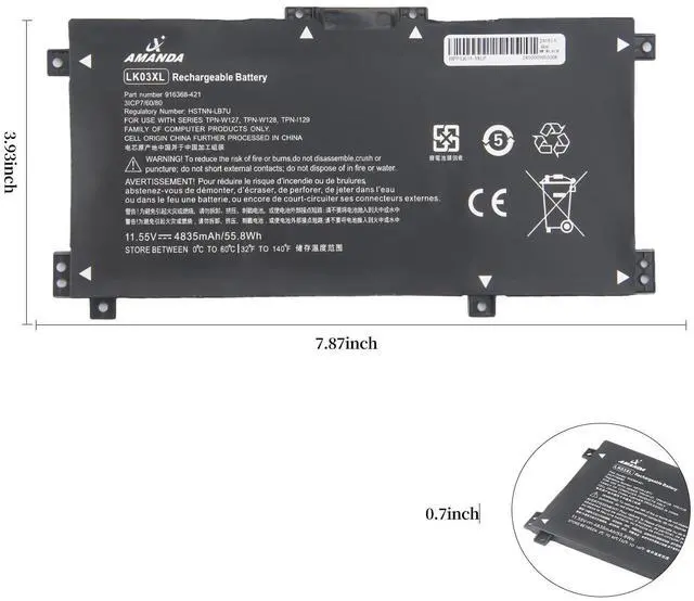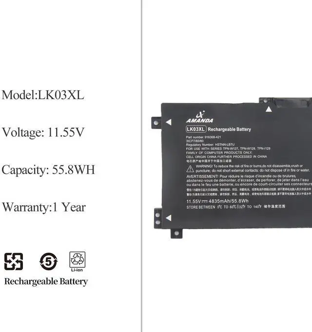 ^^ Compatible Part Number: LK03XL L09281-855 916814-855 LKO3XL LK03048XL LK03055XL LK03052XL 916368-421 916368-541 HSTNN-LB7U HSTNN-LB8J HSTNN-UB71 HSTNN-UB7I HSTNN-IB8N HSTNN-IB8V L08855-856 L08934-1B1 L08934-2C1 L09049-1B1 L09280-855 L09911-141 L09911-421 L09911-1B1 TPN-W127 TPN-W128 TPN-I129.