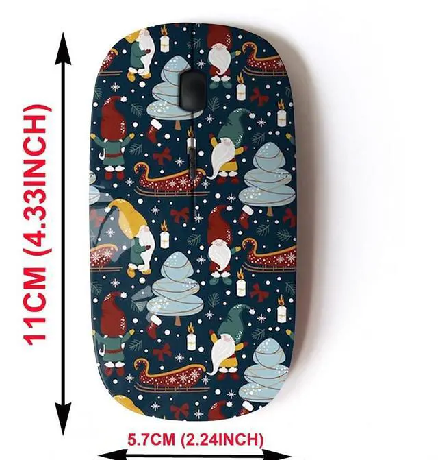 CJCBROES 2.4G Wireless Mouse with Cute Pattern Design for All Laptops and Desktops with Nano Receiver - Gnomes Christmas Night