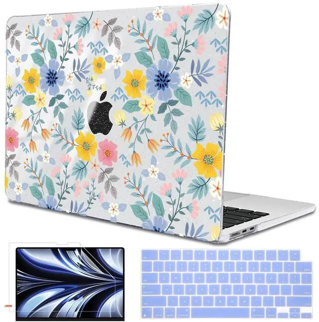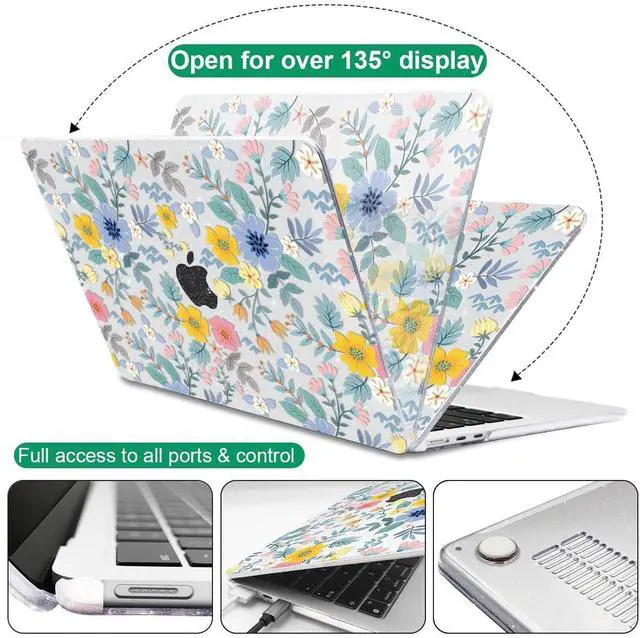 Protection: This macbook air 13.6 m3 case only 0.7 lb, you'll feel your laptop air m2 more natural in handthe. hard shell a2681 cover with two pieces snap on design, easy to put on and snap off. prevent your devices from unwanted cracks, scratches or damages. ^^ Unique 3D UV Painting, slick hard shell cover with crystal black printing finish to resist scratches and skidding and to add something different colorful to your laptop. It allows full access to all ports, fully open over 135 degrees. ^^ Fully vented for safe heat disbursement. The two rows vent slots at the bottom of the case can easily keep your air 13.6 inch M3 device cool. The four raised rubber feet keep your laptop stable and safe. ^^ What you get - 1 crystal black printed pattern top case, 1 crystal black bottom case, 1 matching color silicone keyboard cover, 1 HD screen protector, 1 plastic webcam cover, and 1 cleaning brush.