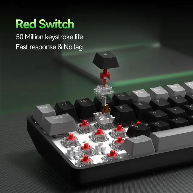 Control with shortcuts: toggle light (Fn+Backspace), change colors (Fn+Shift), switch modes (Fn+), adjust speed (Fn+/) and brightness (Fn+/). Further personalize via software. ^^ Durable & User-FriendlyUV-coated keycaps resist wear. Full N-key rollover ensures accurate input, and Fn+Win locks the Windows key to prevent interruptions. Ergonomically designed for comfort.