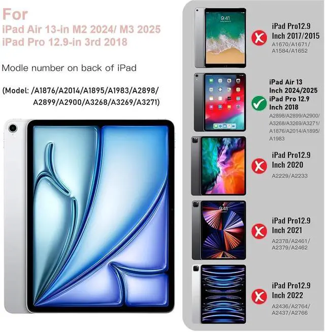 Model number: A1876/A2014/A1895/ A1983) and iPad Air 13-Inch M2/M3 Tablet(2024-2025