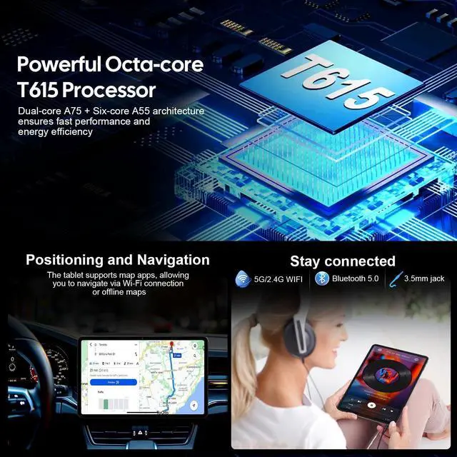 The tablet supports up to 2TB of expandable storage via TF card (TF card not included) insertion, meeting your growing storage needs ^^ Newest Android 15 Tablet with Octa-core CPU12" tablets run 2026 latest Android 15 operating system, featuring optimized personalization, privacy protection, and permission management. Functions like facial recognition, split-screen mode, and widgets enhance your productivity and cater to your preferences. The octa-core T615 processor ensures smoother performance and energy efficiency. Whether for work or multitasking, the 2026 tablet handles it all with ease ^^ 8000mAh All-Day Power + Precision ConnectivityThe tablet with keyboard features an 8000mAh battery with smart charging technology to effectively prevent overheating, allowing you to stay offline longer.