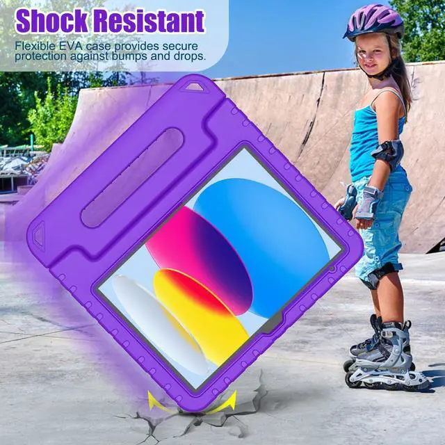 Portable Handle Stand: This iPad 10.9 2022 case with portable handle stand, and it is lightweight, convenient for your kids to catch the handle around. And the built-in stand allow your handle free while viewing.