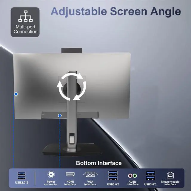 Note: Card reader port not applicable for this model. ^^ Powerful Wireless Connectivity Dual band Wi-Fi technology that supports both 2.4 GHz and the latest 5 GHz fast data transmission, Bluetooth wireless technology for connecting Bluetooth mouse, keyboard, speakers. ^^ Adjustable Convenience PCThis desktop PC is designed with an adjustable arm and rotatable monitor that caters for most scenarios. ^^
