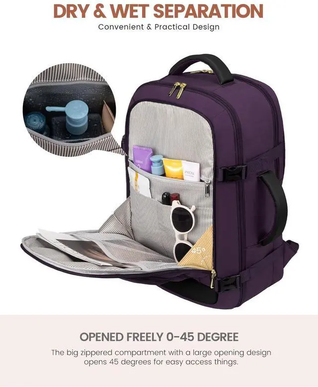 Airline Approved & TSA Friendly : Experience stress-free air travel with our carry on backpack. Measuring 14.2" x 9" x 19.7", it fits comfortably in overhead bins and under the seat. Designed for quick security checks, it opens 180 degrees, making it the perfect travel companion for your journeys.