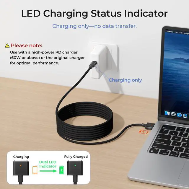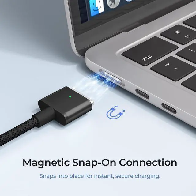 Max Charging: Keep your MacBook powered up in no time with this USB C to magnetic safe 3 cable, supporting up to 140W of fast, stable charging. For the best performance, use it with a PD 3.0 or 3.1 high-wattage USB C charger. Perfect for busy days when you need a quick power boost! ^^ Effortless