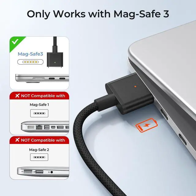Magnetic 3 MacBooks: Designed exclusively for MacBooks with a magnetic safe 3 port, including MacBook Pro 14-in (2021), MacBook Pro 16-in (2021), MacBook Pro 14-in (M2, 2023), MacBook Pro 16-in (M3, 2023), MacBook Pro 14-in (M4, 2024), MacBook Pro 16-in (M4 Pro, 2024), MacBook Air 13-in (M2, 2022), MacBook Air 13-in (M3, 2024), MacBook Air 15-in (M3, 2024), MacBook Air 13-in (M4, 2025), MacBook Air 15-in (M4, 2025). Not compatible with older MacBooks or non-Mag//Safe devices! ^^ Easy-to-Read