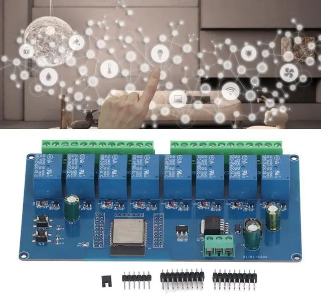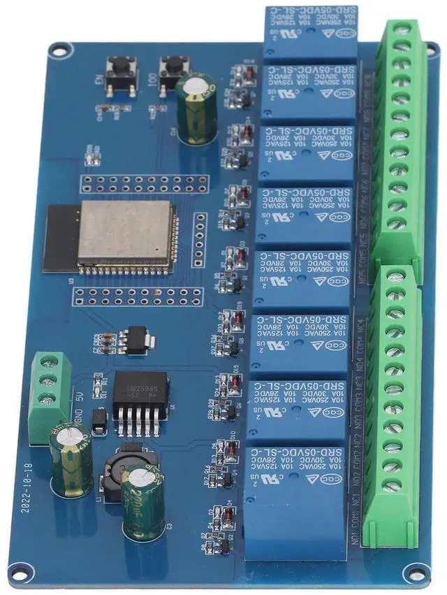 Use: The 8 channel relay development board is equipped with the WROOM-32E and BLE module, and all I/O ports are led out, supporting DC 5-30V power supply. Suitable for secondary development learning, smart home control, and other occasion.