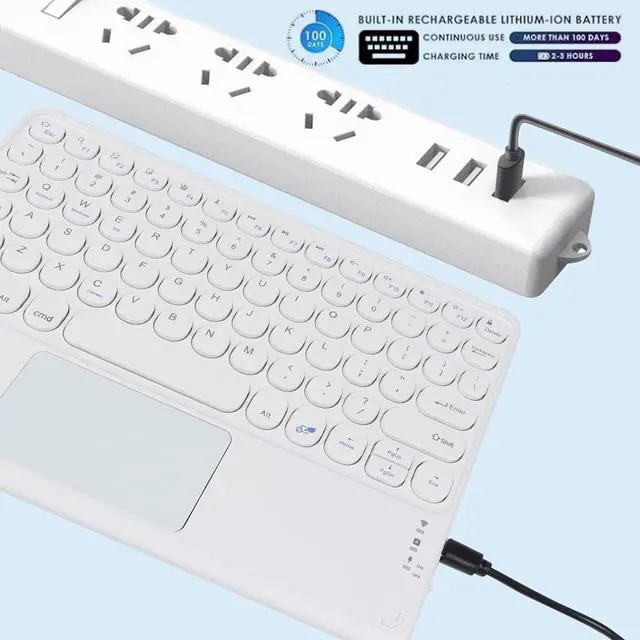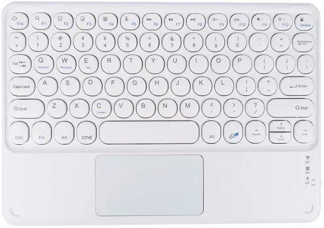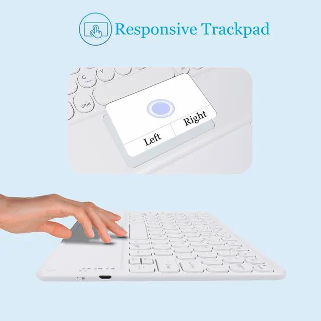 Wide Compatibility Universal 10 inch wireless keyboard designed for all kinds system Tablets, Computer and Smartphone (IOS, Android, Windows system) available in the market. [Press Press ''Fn+Q/W/E" to switch systems. ] ^^ Bluetooth Connection Bluetooth keyboard for iphone ipad adopts new-gen BT 5.1 technology, the working distance up to 33 ft. The keyboard is QWERTY layout, easy to use, has hot keys. you can enjoy seamless operation at home, office, or on-the-go use. ^^ Responsive TrackpadIt has the right and left mouse buttons built into the trackpad, offers tap to touch, finger scrolling, move up and down, makes you navigate and control device with ease using the sensitive and precise touchpad keyboard.