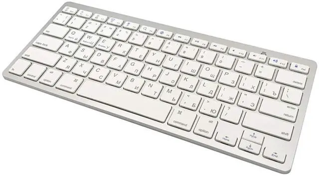ENHANCE YOUR WORKSPACEWhether you are working from home or taking online courses, our keyboard will give you slim size, comfortable and ergonomic feel. Purpose built for Windows/Apple/Androids Systems, it features a 78-key layout, 6 multimedia keys, 10 languages, 13 shortcut keys, and visually stunning aluminum body. ^^ STRONG WIRELESS CONNECTIONConnect With Bluetooth 3.0, the cordless keyboard establishes a stable connection from up to 32ft away via Bluetooth. This eliminates excess cables and clutter, providing a clean workspace. ^^ A SOPHISTICATED TYPING EXPERIENCEEach keycap on our low profile wireless USB keyboard is designed with a concave shape and scissor flexor technology.