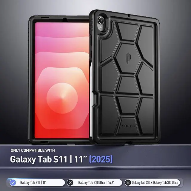 COMPATIBILITY - Compatible with Samsung Galaxy Tab S11 ( 2025 Released). Our case is designed to protect S-Pen nicely while wireless charging still fully compatible ^^ CHILDPROOF - Made with kid-friendly, non-toxic silicone. Includes tactile side grip and unique rear turtle shell design with raised supports for better grip and drop protection ^^ THICK SILICONE - Plus thick silicone with protective coating for splash proof protection. Unique corner protection with perforated shock absorbing design to protect from extreme shock and impact ^^ UNIQUE CORNER PROTECTION - perforated shock absorbing design to protect from extreme shock and impact ^^ HEAT VENTS - Raised air vents in the interior help keep the device cool and prevents overheating