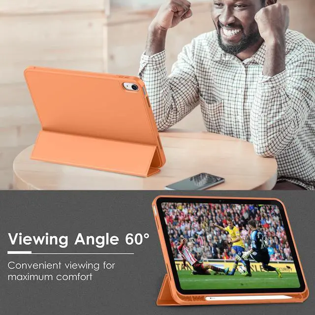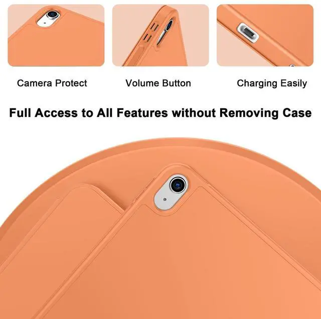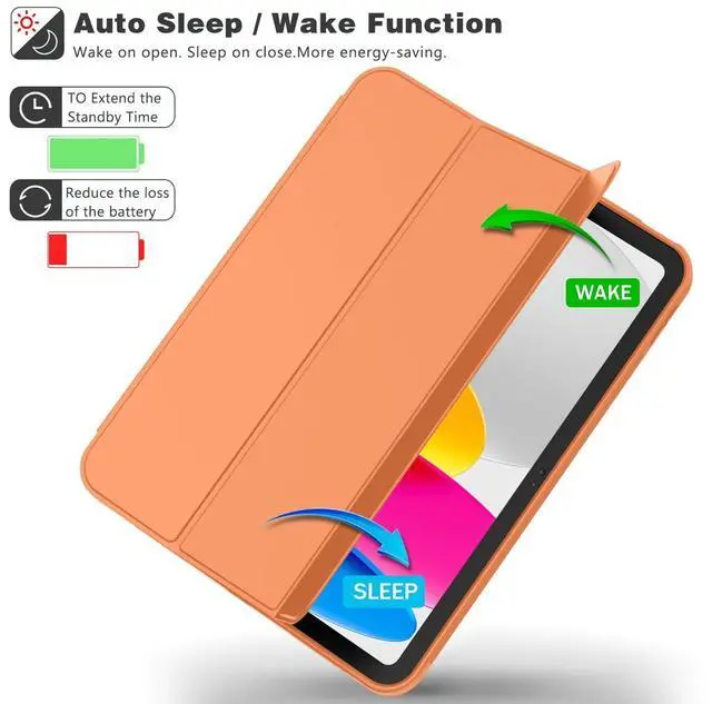 ToaPoia Case for iPad (A16) 11 Inch 2025/iPad 10th Generation 10.9 Inch 2022, Slim Trifold Stand Protective Cover with Pencil Holder and Soft TPU Back,Support Auto Sleep/Wake (New Orange)