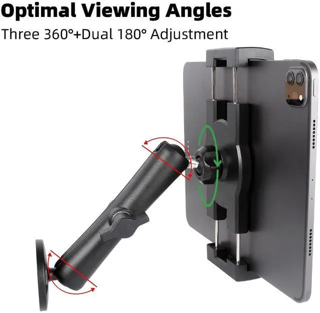 Versatile Multi-Surface Mount: Designed for truck, car, boat, wall, and desk, this heavy-duty tablet holder securely fits devices from 4.7" to 12.9". Perfect for drivers, sailors, or commuters, it keeps your device stable on bumpy roads or at workstations.