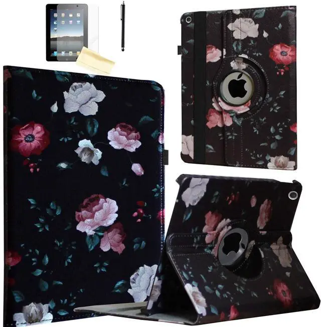 JYtrend Case for iPad 10.2 inch, for iPad 9th 8th 7th Generation, Rotating Stand Smart Magnetic Auto Wake Up/Sleep Cover for A2602 A2603 A2604 A2605 MK2L3LL/A MK2P3LL/A MK673LL/A (Flower Black)