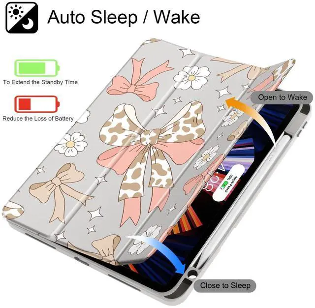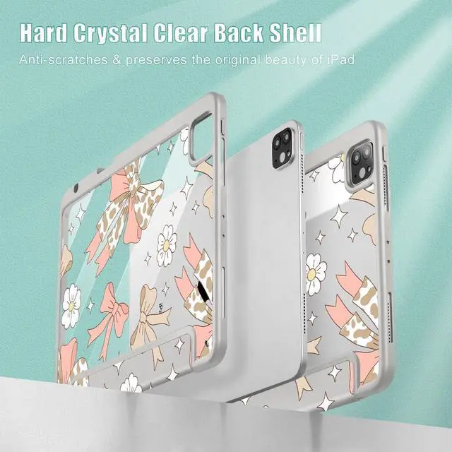 Tuiklol Case for iPad Pro 12.9 Inch M2 Case 2022 2021 2020 2018 Generation 6th/5th/4th/3rd,Built-in Pencil Holder Clear Transparent Protective Back Shell Cover, Leopard Bow Pink