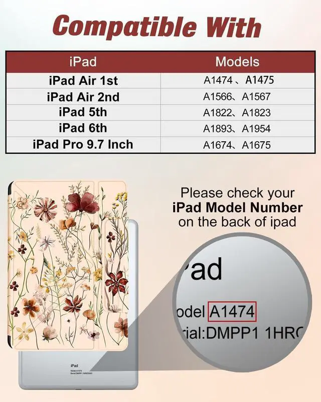 Compatible Model: Only for iPad 9.7 inch 6th/5th Generation 2018 2017, for iPad Air 1/2/Pro 9.7", not compatible with other devices, please check your model before ordering ^^