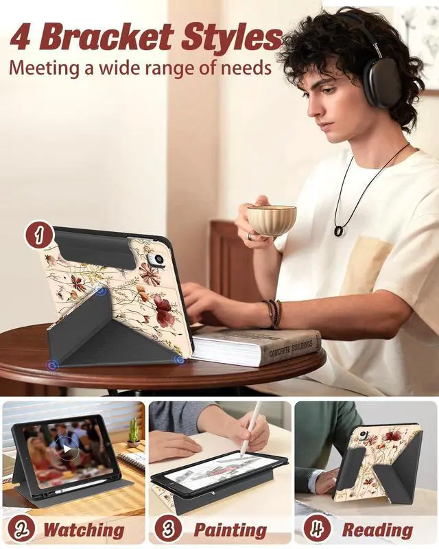 Bracket Styles: The case for iPad can stand at 4 different positions on the table. Provide you comfortable viewing and typing experiences ^^