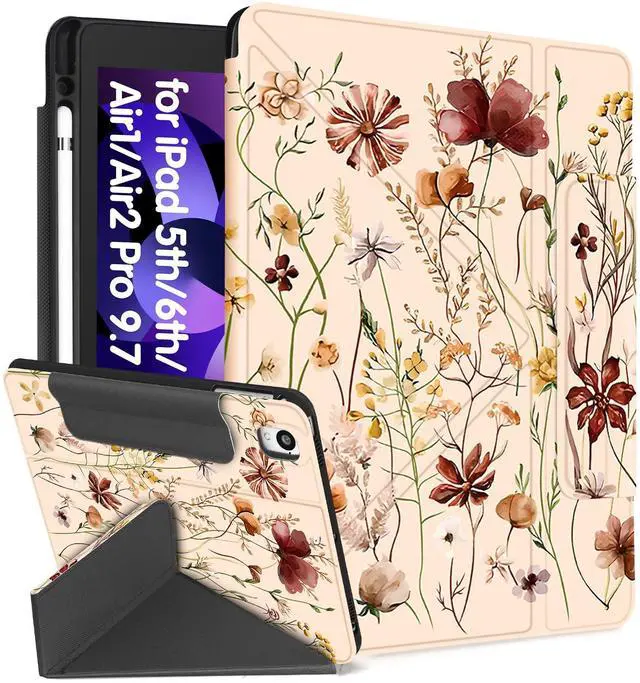 Pencil Holder: This for iPad 9.7 inch 6th/5th Gen Air 1/2/Pro 9.7" case with pencil holder is made of premium durable PU leather and soft TPU, offer a good protection from drop and shock, pencil fits in and out easily and won't fall out ^^