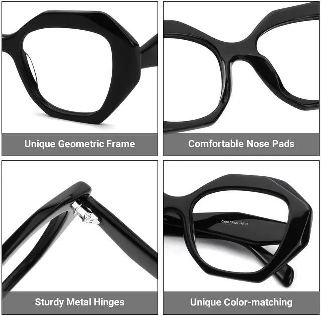 Material]: Made of high-quality acetate material, this geometry eyeglasses frame is lightweight and durable, reduce the burden on your nose bridge when wearing it.
