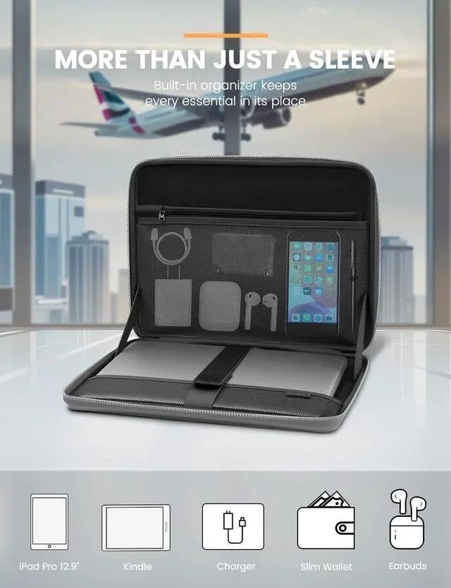• Built-In Bump Protection : This computer cases for laptops, built with a thickened EVA hard shell and soft foam interior, this sleeve absorbs daily knocks and unexpected drops with ease. Whether it's shoved in a crowded backpack or tossed onto a TSA tray, your laptop is cushioned on all sides with this laptop case. It's perfect for frequent travelers, commuters, and students who demand impact protection without bulk with this chromebook case.