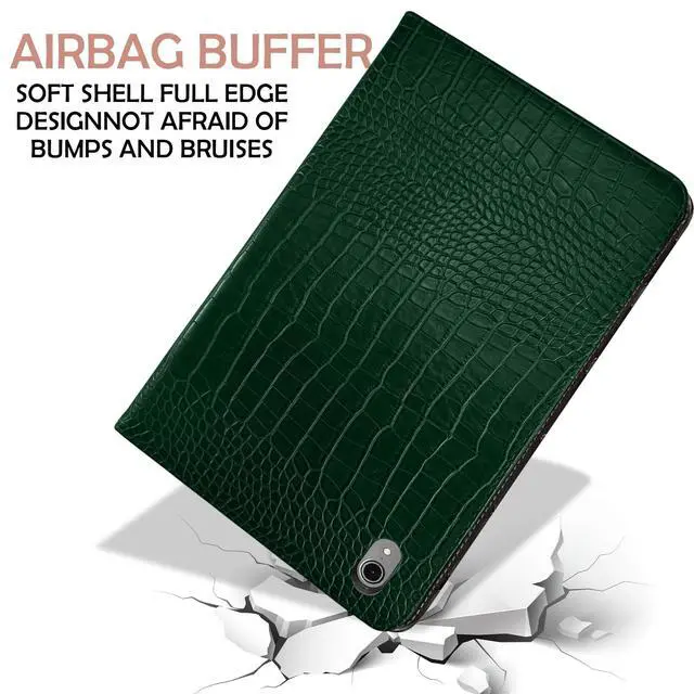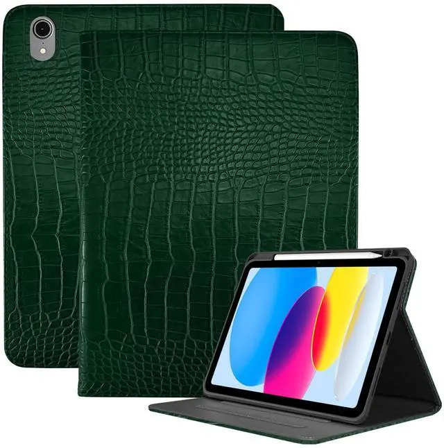 Deokke Premium Leather Compatible with iPad (A16) 11th Generation 11 Inch Case 2025,iPad 10th Generation 10.9 Inch Case 2022,Pencil Holder Folio Crocodile Auto Sleep/Wake Cover Women Girls-Dark Green