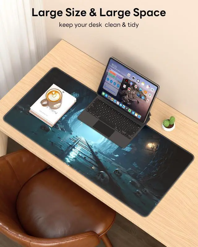 • Large Mouse Pad for Desk: The gaming mat measures 31.5 x 15.7 inch, it provides a plenty of space for your mouse to move around, and large enough to hold a gaming mouse, full-size mechanical keyboard, and other desk items