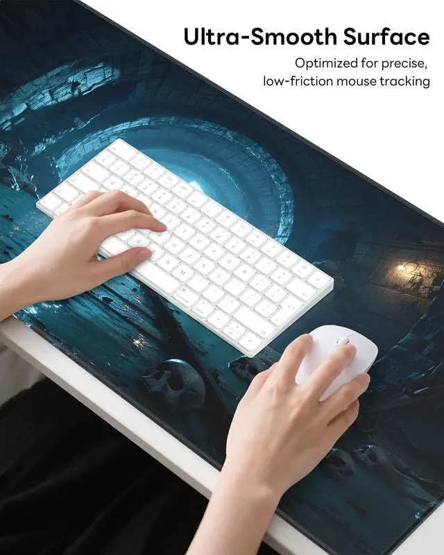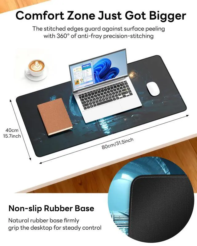 • Non-slip Rubber Base: The soft & thick rubber backing has a dense non-skid texture, keeping your desk mat firmly in place. This oversized mouse pad stays uniformly flat on imperfect surfaces. Immerse yourself in work or games without annoying mat movement