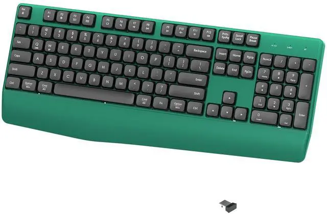 COVEVA Wireless Bluetooth Keyboard, Ergonomic Keyboard with Wrist Rest, Compatible with PC/Laptop/Windows/Mac for Home and Office Use (Black Green)