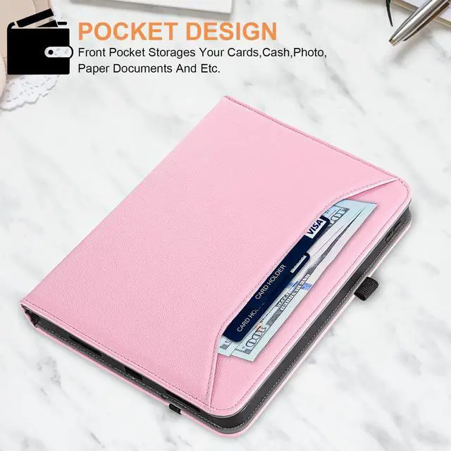 Features: 1. Front Pocket Design, Can Store Personal Items Such As Bank Cards, Cash, Etc. 2. Multi-Angle Support, You Can Adjust The Appropriate Angle According To Personal Needs, And The Anti-Slip Strip Prevents The Tablet From Slipping During Operation. 3.