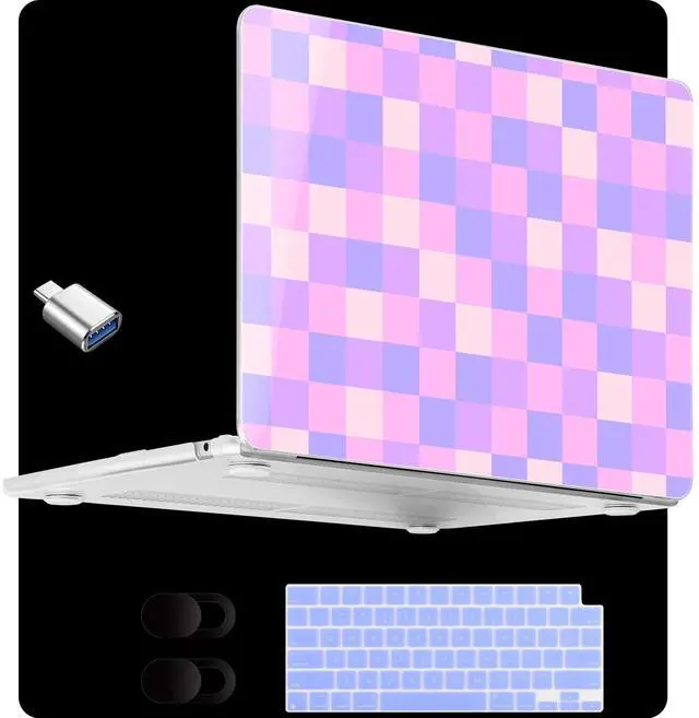 MEEgoodo for MacBook Air 15 inch Case (M4/M3/M2) 2025 2024 2023, Cover Fit Model(A3241/A3114/A2941) for 15.3-inch Laptop, Clear Shell with TPU Keyboard & Webcam Cover, Colorful Square Pattern