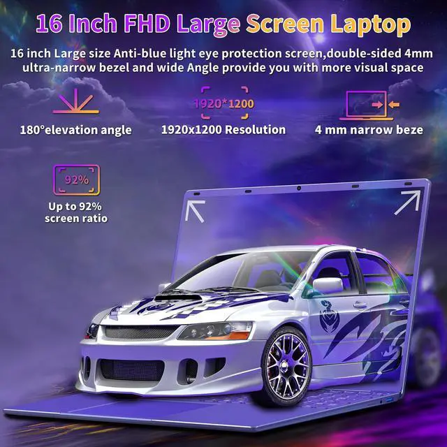 ^^ 16" Immersive Visuals The 16-inch laptop features a 4mm thin-bezel display (up to 92% screen ratio) with a 16:10 aspect ratio, 1920x1200 resolution with high pixel density makes images sharper, providing users with an immersive look and feel during the viewing, gaming or creative design process. ^^ Stylish DesignWeighing only 3.7 pounds and 0.59 inches thin, this laptop's extreme thin and light appearance is ideal for mobile work and entertainment. The 180 flat hinge and mini stand on the back make it easy to share content or collaborate with friends. ^^ Rich and High-quality Scalability Paired with the Full-size numeric 7 Colors Backlit keyboards, fingerprint recognition, USB 3.0 2, headphone jack, DC jack, Micro SD card slot, and mini HDMI.