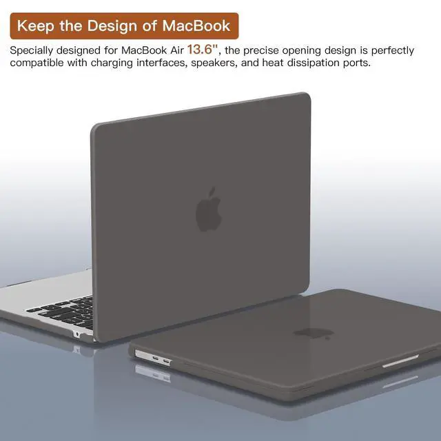 ^^ WARNING: NOT FOR MacBook Air 13-inch 2018-2021 Release M1 A2337/ A2179/ A1932 model and other model laptops. Please kindly check the model number "Axxxx" on the back of the laptop before purchase, make sure you choose the right model "A3113" or "A2681" or "A3240". ^^ [Simple Case, Logo NO See Through Design] Made of premium plastic material, Ultra slim but Sturdy and Light-weight ( 8.2 oz or 230 g) with soft touch pure matte frosted grey color texture surface like a glove. No cut out design that makes your midnight/starlight/space gray/silver macbook air m2 / m3 out of the ordinary while keep the original design. ^^ [Two Separated Pieces Case, Snap on/Clip On Design] Top Cover and Bottom Cover Two pieces (separated cover) and Snap on design, easy to clip on and take off, let you open/close your MacBook freely all the time. Thunderbolt port access, also access to all ports without removing the case. Bottom cover with vent slots to heat dissipation and 4 raised rubberized feet to keep your laptop firmly on the place. ^^ [5in1 Bundle