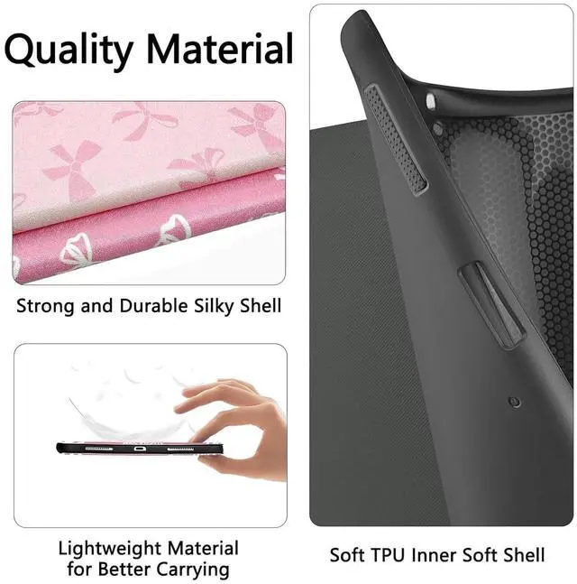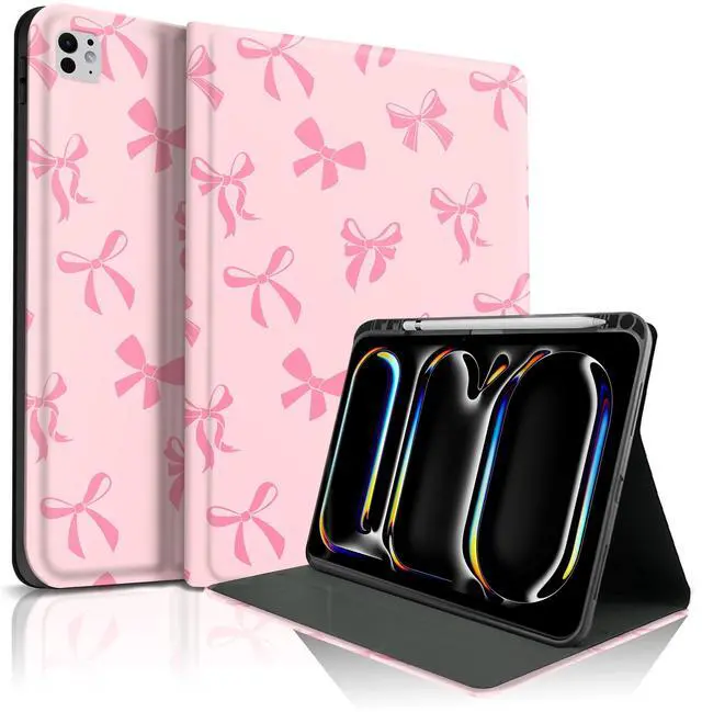 [ Compatibility ] Compatible with iPad Pro M4 Case 11 inch 2024] This case is designed specifically for iPad pro 11 inch case 5th Generation 2024; It is not compatible with any other devices. Please verify the model number (A2836 A2837 A3006) located on the bottom of your device before making a purchase. Please check the back bottom of your for iPad to find the model number before purchasing ^^ [ Multi-angle and Non-slip ] The cute case is made of non-slip fabric that supports for iPad smoothly and adds three notches to adjust the three viewing angles, providing you with a more comfortable viewing and typing angle.