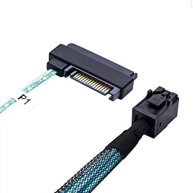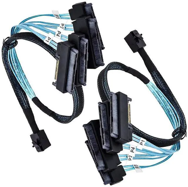 This forward-breakout Mini SAS HD assembly fans out one SFF-8643 host to four SFF-8482 29-pin drive connectors, each with a 15-pin power port. Optimized for short in-chassis routes, the 0.5 m harness delivers SAS3 12Gbps performance for reliable cabling from HBA/RAID cards (LSI/Broadcom 93xx/94xx) to four SAS HDD/SSD. Ideal for tidy runs to hot-swap cages or server backplanes in compact NAS, workstation, and rackmount builds.