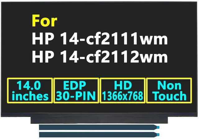 Important: You must match the RESOLUTION and SCREEN SIZE, TOUCH/NON-TOUCH to your current screen. Purchasing a screen with different specifications will not work with your system. If you are unsure what your current screen specification is, please contact us before purchase and we will gladly help. Diagonal Size14"; ResolutionHD 1366 (RGB) 768 WXGA; Signal InterfaceeDP 30-pin; TreatmentMatte; Touch PanelNon-Touch; Mounting bracketsNon; Shape StyleSlim (PCBA Flat); Package includes Brand NEW LCD screen only, no extra control board, bezel, back cover, instruction or tool etc. Please keep your original parts. Please confirm with us if you are not sure which parts fit your machine. Comes with Complimentary Double Sided Stretch Release Adhesive Tape for Installation.