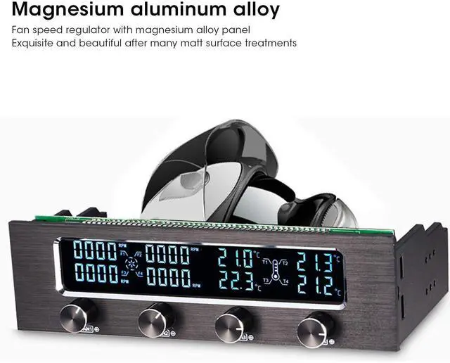 Feature: 1. The rare CPU fan speed controller with aluminum-for alloy panel has undergone multiple matt treatments and is suitable for any chassis. 2. Equipped with a wide LCD screen, 4 sets of fan speeds, 4 sets of temperatures are displayed on the LCD screen, so you can see the computer work at a3. With a safety system with high temperature alarm and fan anti-seize. When the computer temperature exceeds 60 degrees, the temperature flashes and an alarm sounds. 4. Use PWM circuit to adjust speed to reduce high frequency noise, and at the same time reduce noise by reducing fan power5. High-specification capacitors are resistant to high temperatures, have a longer service life, and refuse damages such as electricity running and leakageSpecification: Item
