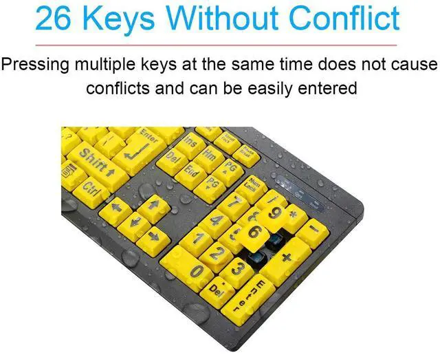 High Contrast: This wired keyboard with yellow keys and large print black letters, Can provide greater visibilityEasy to view even in low light environment. Perfect for elderly and visual impairments ^^