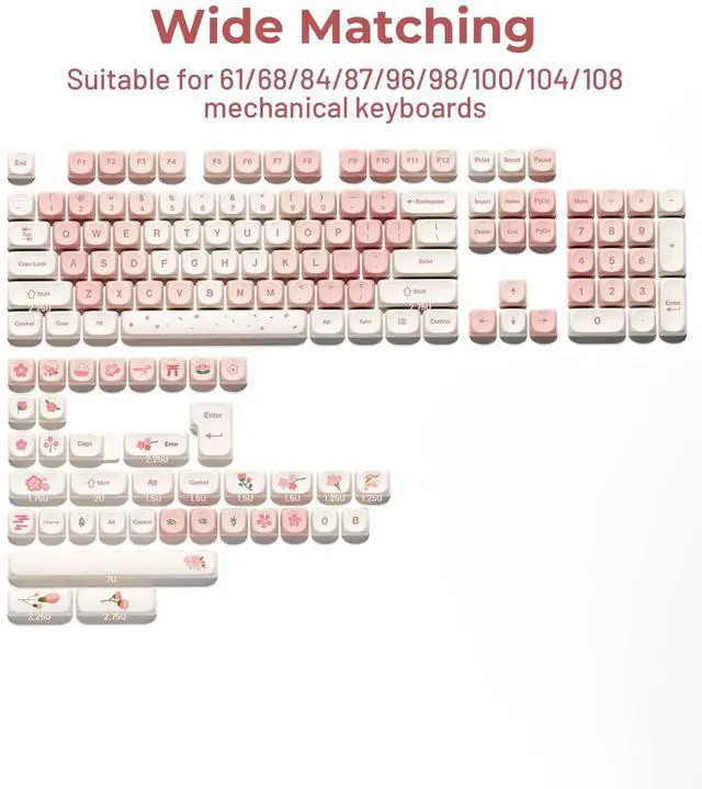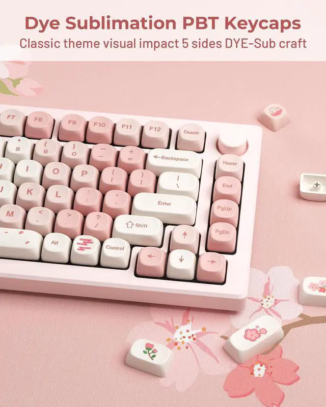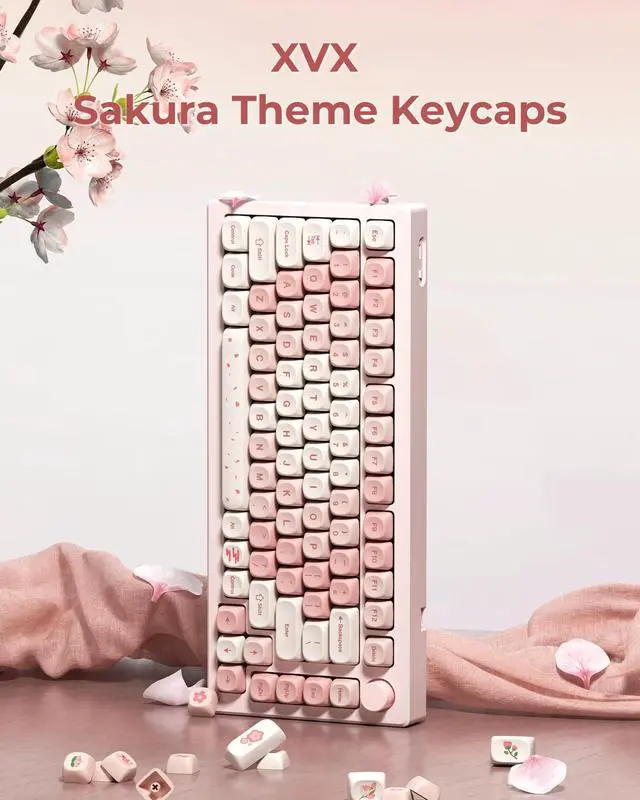Elegant Pink Keyboard KeycapsStep up your keyboard's aesthetic with the XVX pink sakura keycap set. These custom keycaps are inspired by the gorgeous cherry blossoms of Mount Fuji to add a pink romantic element to your keyboard, perfect for users who crave uniqueness and style. ^^ MOA KeycapsThe new MOA profile keycap is prettier and cuter than the XDA keycap. It also ensures that the typing sound is more even, and makes the accent key simple but enjoyable. Rounded corners give a simple, sophisticated feel that makes you feel like you're typing in the clouds.
