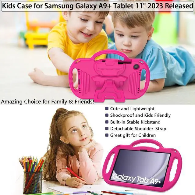 Perfect CompatibilityONLY for 2023 Release Samsung Galaxy Tab A9 Plus 11 Inch (SM-X210/ X216/ X218). NOT fit for ANY other models. (Note - Be sure to check your model number in the tablet settings before purchase). ^^ Cute DesignGalaxy tab a9 plus case for kids, designed with unique robot kickstand, prop up the stand anytime needed, start hands-free viewing in a comfy angle. Plus come in a series of enjoyable vibrant colors, fun and functional, amazing gift for children. ^^ Shoulder Strap & Built-in HandlesGalaxy tab a9 plus case comes with detachable shoulder strap and handles-all-around, easy to carry, travel-ready, super convenient while on the go.