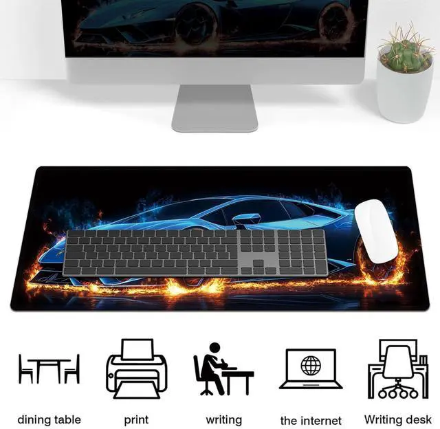 • UNIQUE DESIGN:Add a touch of creativity to your desk Blue Sports Car Pattern Large Mouse Pad. This striking design not only enhances your workspace with a unique style but also creates a visually stimulating environment that boosts focus and productivity.