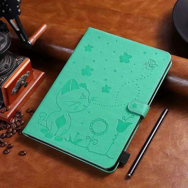 YBFJCE Case for Samsung Galaxy Tab A7 Lite 8.7" 2021,PU Leather Folio Protective Stand Cover for Samsung Galaxy Tab A7 Lite 8.7" 2021(SM-T220/T225),Cat and Bee Flip Tablet Case Shell,Green
