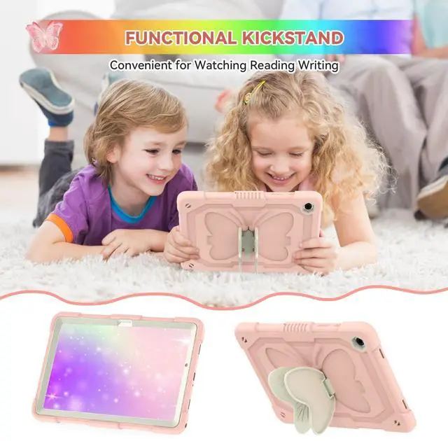 Compatible Model This case is specifically designed for Samsung Galaxy Tab A9 Plus/ A9+ 11 inch (Model: SM-X210/X216/X218), release on 2023. It is important to verify your tablet model before purchasing. (Package NOT INCLUDE the pencil) ^^ With Screen ProtectorThis 2-in-1 rugged case for galaxy tab a9 plus includes a screen protector made of tempered glass with high hardness, effectively safeguarding the screen against bumps and scratches. It also offers a combination of a hard PC frame and a high-quality silicone back cover, this dual-layer drop-proof design ensures robust protection for the tablet. ^^ Butterfly KickstandThe kickstand on this galaxy tab a9 +case shaped like a butterfly, with its wings spread out, creating a lively appearance, it also allows you to easily position your tablet in a horizontal viewing, providing a stable and adjustable stand for various activities, like reading, typing, browse websites or have video calls with friends. ^^ Shoulder StrapThis samsung galaxy tab a9 plus case comes with a shoulder strap. It provides both protection and kickstand function while considering the need for mobility, you can comfortably hang it on your shoulder and enjoy the convenience of using your tablet. ^^ Kids-Friendly CaseThis galaxy tab a9+ case brings fun to every child and enhances the convenience of using tablets in their daily life, perfect for a stylish and practical holiday gift, suitable for kids, girls, boys, and teenagers.