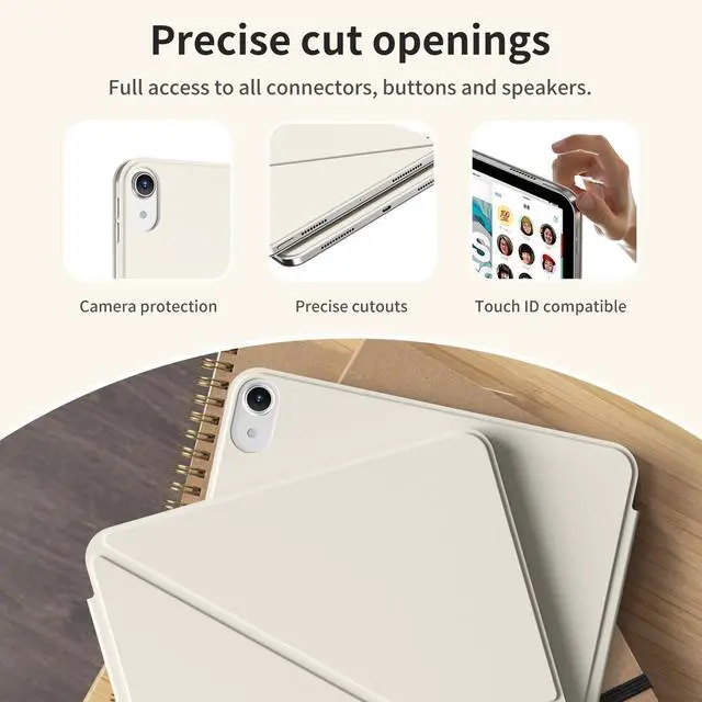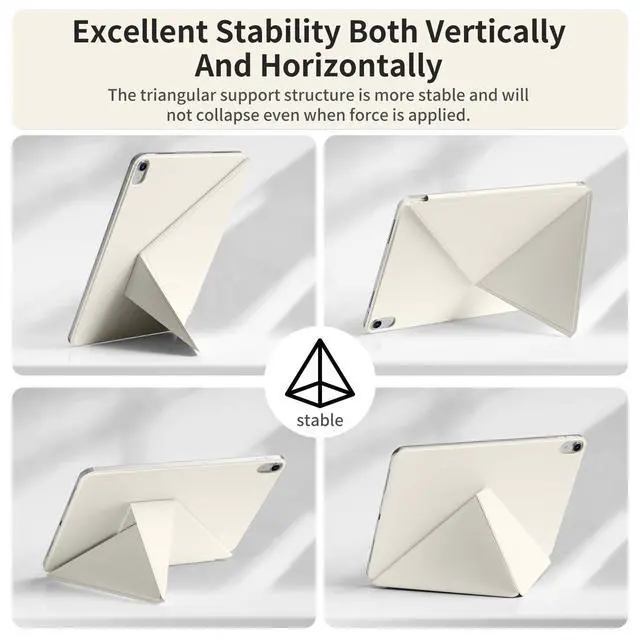 Designed for the new iPad (A16) 11th generation 11-inch 2025 (Model: A3354, A3355, A3356) and iPad 10th generation 10.9 -inch 2022 (Model: A2696, A2757, A2777). Please check the back of your iPad to find the model number. ^^ High-quality craftsmanship and an exclusive height-enhancing folding design open up new horizons for height. It reverses the inertia of the traditional iPad stand design and is a pioneer in fashion. The new frameless upgrade adds a variety of design elements, rich in details, and lets you experience a high-quality magnetic iPad case, protecting the iPad 10th/11th generation. ^^ Ultra-thin magnetic case, strong built-in magnets ensure a secure fit between the case and the iPad 10.9 /11-inch, easy to install and remove. It features super-strong magnetism and a detachable construction. When you open or close the case, the smart magnetic stripe sensor automatically wakes or puts the tablet to sleep to maximize battery life. ^^ This smart folio case easily switches between multiple modes to ensure a comfortable angle for catching up on your favorite shows or taking notes with your Pencil. It's the perfect case for the 10.9 -inch/11-inch iPad 10th/11th generation. ^^ This 10.9 -inch 2022 case for iPad 10/11-inch 2025 is made of high-quality TPU material.
