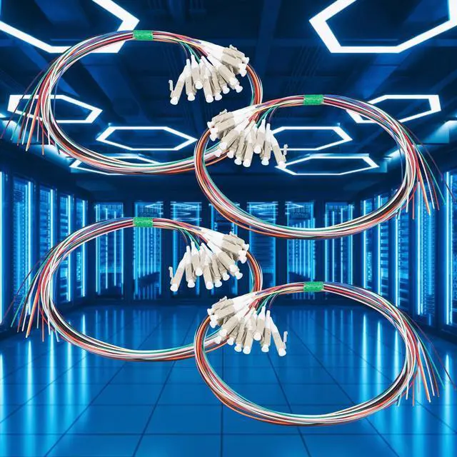 24 Duplex LC-OM3 KitRack Mount Enclosure Box with Spool 48 Strands 1.2 m LC Pigtail, Fiber Type 0.9 mm 50/125 MultiMode OM3; The snap on design allows for quick installation and maintenance. No need to tighten screws. ^^ Low Insertion LossGood Low Back Reflection & High Return Loss. The insertion loss of each fiber optic pigtail is less than 0.3 dBm, with good temperature stability. Set of Accessories is Complete and The Optical Fiber Couplers is Configured. ^^ 12 Color Mark12 strand cables are individually color coded for ease of use, saving installation time and preventing incorrect patching.