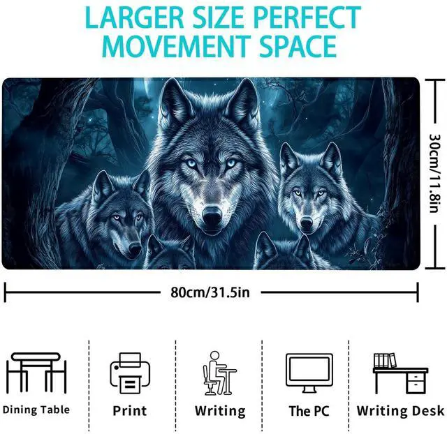 Mousepad is 31.5" x 11.8", suitable for most desktops, takes up no space and is easy to carry. Its soft material not only provides comfortable support for your wrist, it can also be rolled up and put into a bag for easy use anywhere. This mouse pad is not only powerful, but also aesthetically designed, suitable for a variety of office and gaming scenarios, whether it is a simple style of desk, or full of personalized gaming rooms, can be perfectly matched. It is the ideal choice for your productivity and game performance, and is also a practical gift for friends and relatives.