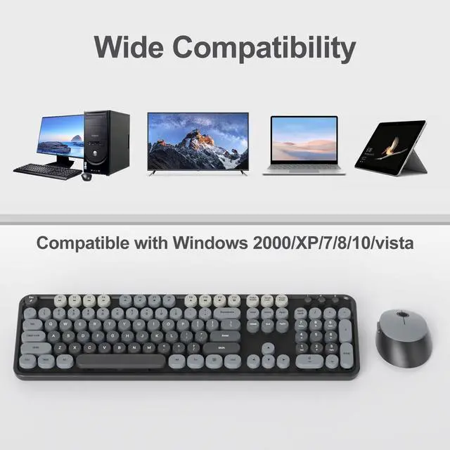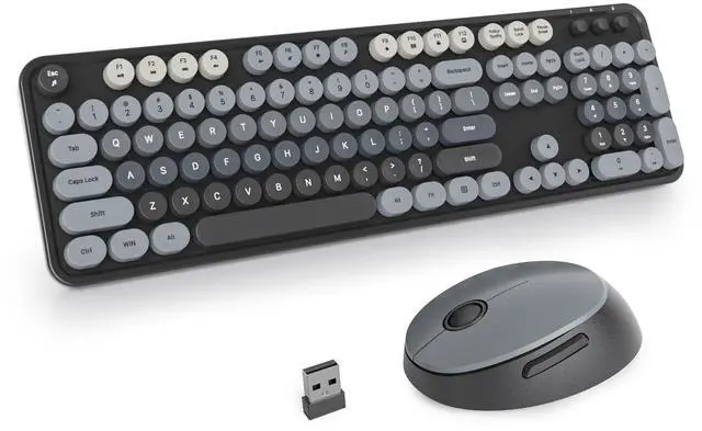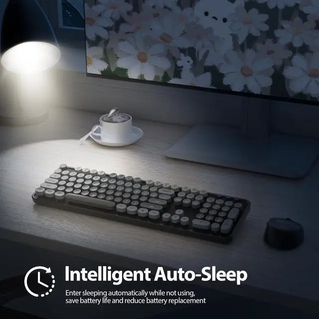 Detachable Round Keycaps: Featuring a cute and retro design, this typewriter wireless keyboard and mouse combo adds a touch of charm to your workspace. The round keycaps give it a unique and vintage look, making it not only functional but also aesthetically pleasing. ^^ 2.4G hz