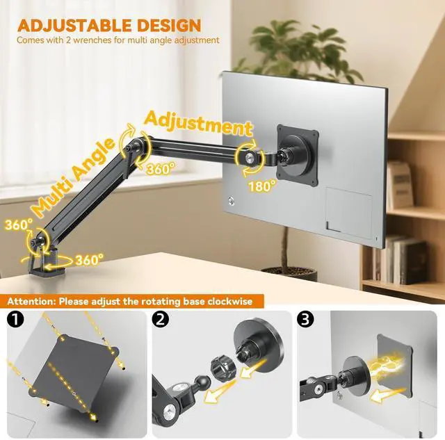 Premium Material & Easy Installation: Crafted from aluminum alloy, this travel monitor stand is sturdy, durable, and lightweight. The tablet arm comes with built-in installation tools for quick and easy setup.