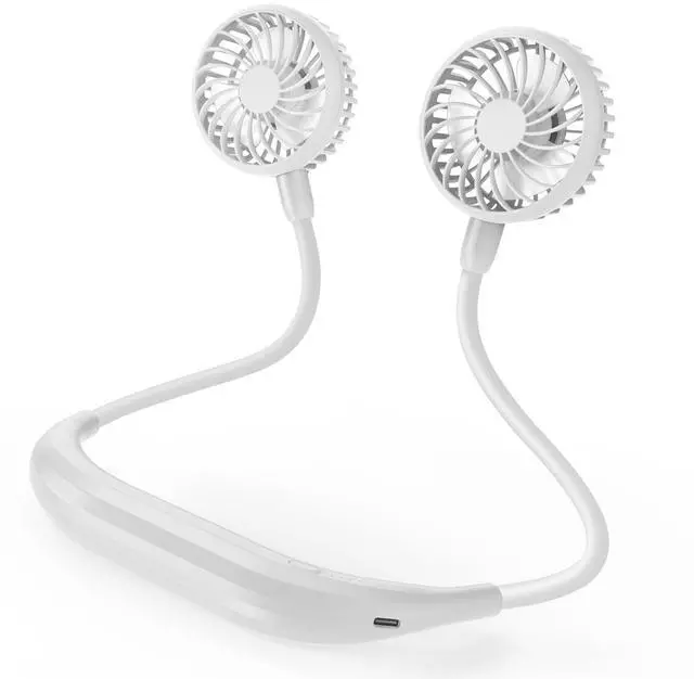 Stronger Wind & Ultra Quiet: This portable neckband fan is designed with 3 fan blades and dual fans, offers much more powerful cool wind from both sides. Ultra quiet motor produces mute wind, let you enjoy desired coolness without disturbance of loud noise. Wear the fan on the neck and let cool breeze reaches your face, and stay away from the hot flashes ^^ Hands Free & 360