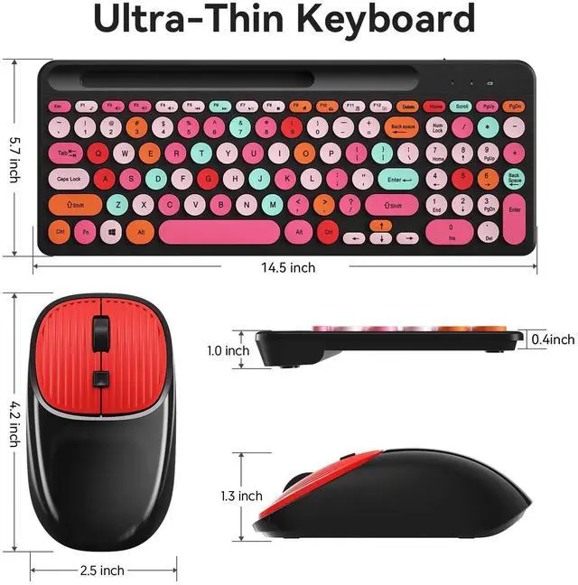 ^^ Silent Wireless MouseComputer mouse provides whisper silent click, no need to worry about disturbing others to rest while working or playing. DPI adjustable mouse provides 3 levels of DPI (800/1200/1600) to meet your different needs in terms of sensitivity. ^^ Compatible wireless mouse and keyboard comboIncludes a full-size keyboard and a high-sensitivity mouse. Works with your PC, Desktop, Laptop or Notebook. Compatible with Windows XP / Vista / 7 / 8 /10 operating systems. ^^ Power indicatorthe new battery into the keyboard and mouse, if the normal connection with the computer power red light will flash 5-8 seconds off, if the computer is not normally connected to the power red light on for a moment on off.